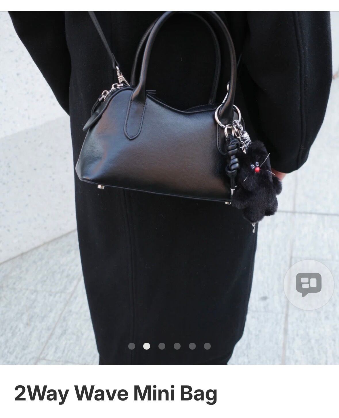 牛革で仕立てた、ハンドルが自立するウェーブミニバッグ。
